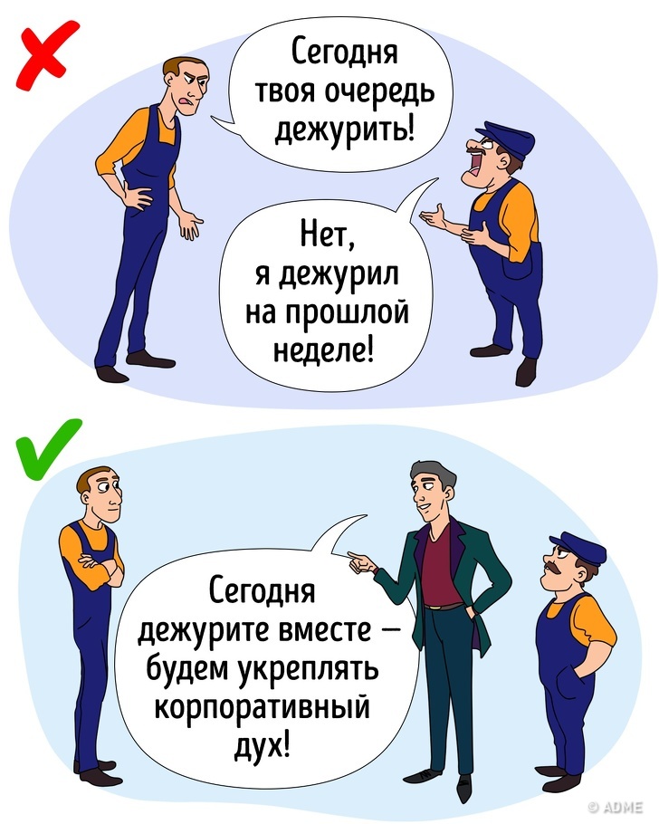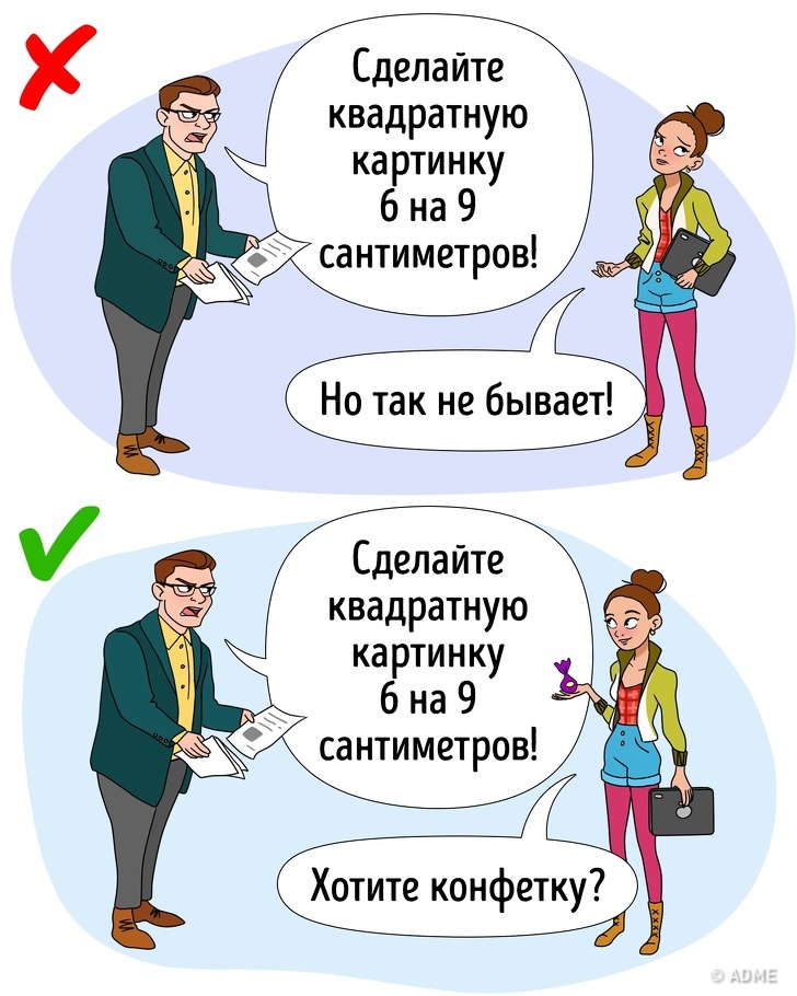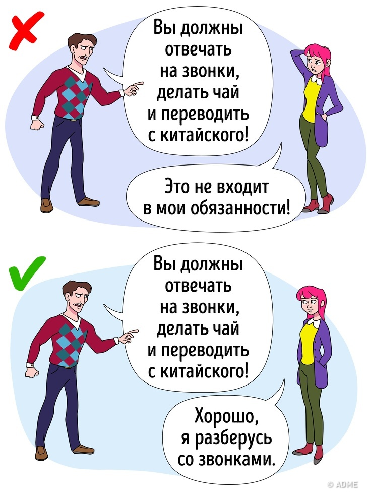 У конфліктній ситуації підіть назустріч співрозмовнику. Тільки важливо пам'ятати, що вимоги повинні бути розумними і обґрунтованими, — не переступайте через себе.