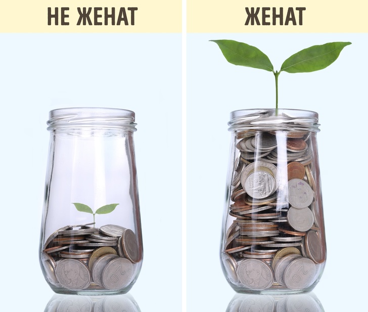 Дослідження показали, що одружені працівники часто заробляють більше грошей, викликають довіру і отримують більше пільг, ніж їхні неодружені колеги. Згідно досліджень Мічиганського університету, заміжні жінки заробляють на 4 % більше, ніж самотні, а одружені чоловіки, відповідно, на 7 % більше.