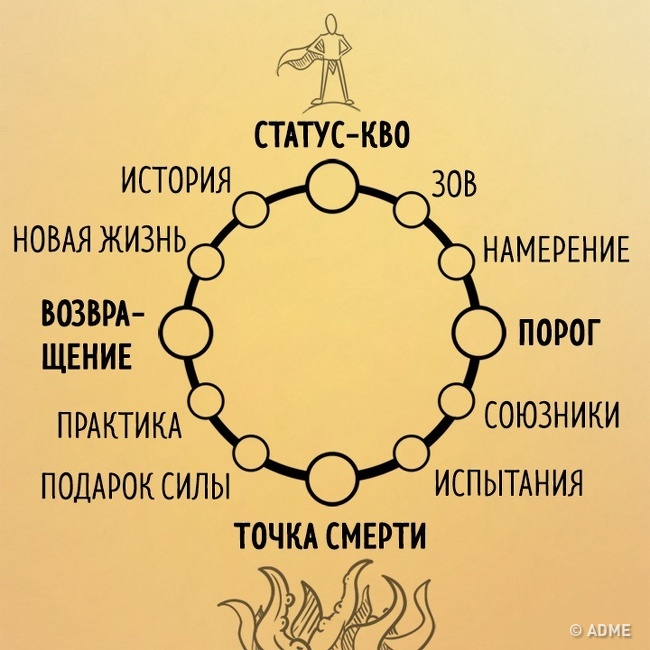 Казка про Червону Шапочку, подвиги Геракла, легенда про Короля Артура. Будь-яка книга, голлівудський фільм, серіал, гра або мультфільм. Все має одну і ту ж структуру, одні й ті ж етапи.