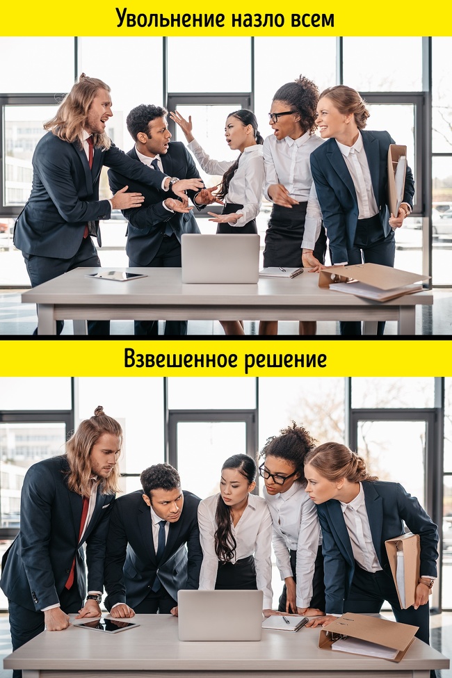Але повірте, ніхто не буде сумно кивати головою, дивлячись вам услід. Звільняючись з-за банальної сварки, ви зробите гірше лише собі самому. При тому що через пару тижнів від конфлікту могло б не залишитися і сліду.