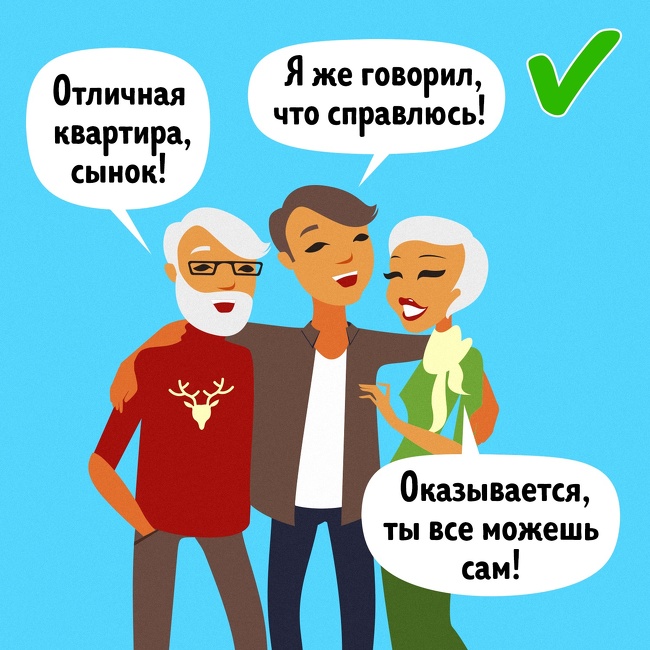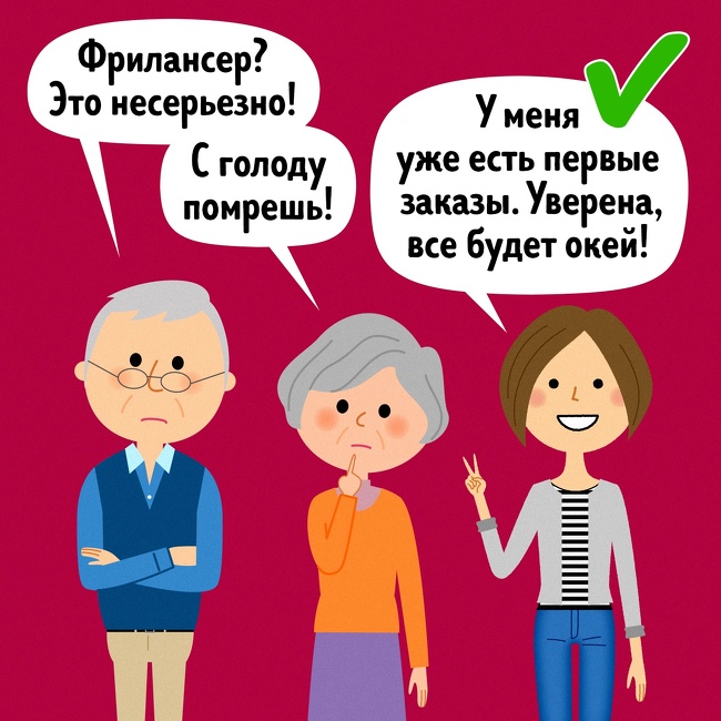 Чому вони запитують? Тому що ваше захоплення вегетаріанством або робота фрілансером — це щось надзвичайне, що не відповідає їхньому життєвому досвіду і тому відразу сумнівне. Тому батькам складно утриматися від критики. «У більшості випадків близькі члени родини мають позитивні наміри, намагаючись підштовхнути вас в певному напрямку. Вони намагаються тримати вас в безпечній зоні. Вони не хочуть, щоб ви робили щось ризиковане або нетрадиційне», — пише коуч Едуард Эжеану. Так що сприймайте батьківську критику не як критику, а як турботу про вас.