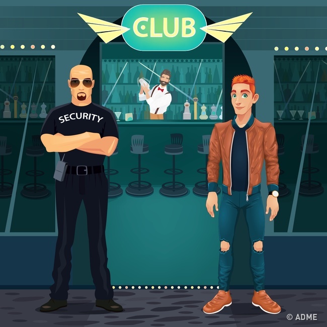 Молода людина хоче потрапити в клуб, але не знає пароля