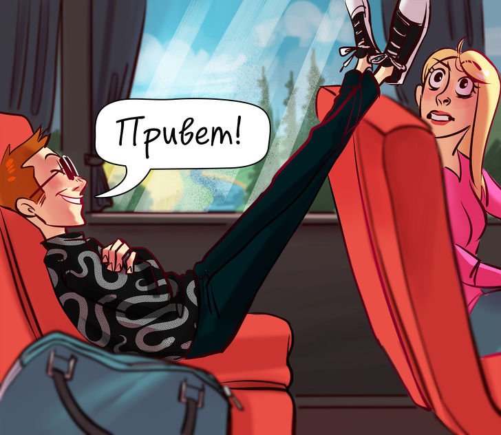 Як вижити поруч: зробити зауваження. Якщо не допоможе, закинути ноги на її спинку крісла.