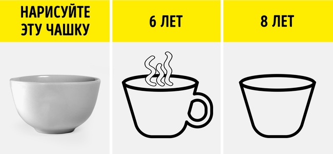 Крім цього, існує цікавий факт, який був відкритий в ході експерименту. Дітям у віці від 5 до 9 років поставили завдання намалювати кухоль, яка була розміщена так, що ручки видно не було. Незважаючи на те що ручка не потрапляла в поле зору дітей, кожна дитина у віці до 7 років зобразив ручку на своєму малюнку. Діти старше 7 років малювали чашку без ручки.