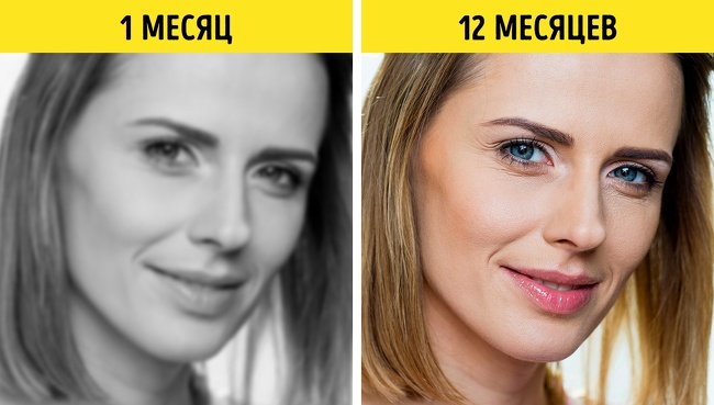 В ході одного з експериментів було доведено, що малюки до 6 місяців не здатні розрізняти особи різних людей, а до 9 місяців дитина адаптується і починає ідентифікувати обличчя своїх і чужих. І вже до року його погляд стає сфокусованим і він починає бачити об'єкти чіткими і кольоровими.