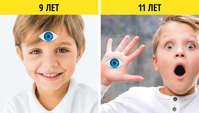 Психологом Рудольфом Шаффером був проведений експеримент, в якому він запропонував двом групам дітей знайти місце на тілі, де можна було б розмістити третє око. У першій групі, що складалася з 9-річних дітей, всі экспериментируемые вказали на лоб, тобто ту область, де вже знаходяться два ока. Друга група складалася з 11-літніх, здатних роздумувати над абстрактним. Вони почали пропонувати абсолютно різні варіанти, наприклад долоні, які допоможуть бачити збоку або ззаду.