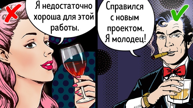 - Іноді можна брати приклад з чоловіків, адже вони схильні переоцінювати свої професійні здібності. Саме ця стратегія частіше дозволяє їм досягати успіху.