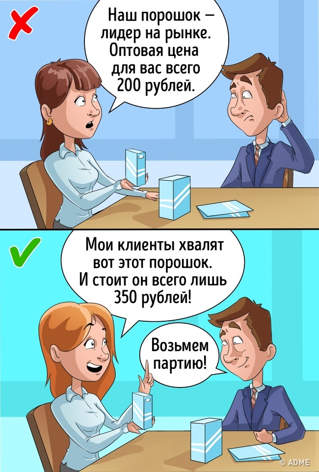 Дослідження показало: на 85 % фінансове благополуччя залежить від таких речей, як індивідуальність, уміння спілкуватися і вести переговори. А лауреат Нобелівської премії психолог Деніел Канеман виявив, що люди охочіше ведуть бізнес з людиною, якій вони подобаються і довіряють, навіть якщо він пропонує більш дорогий продукт.