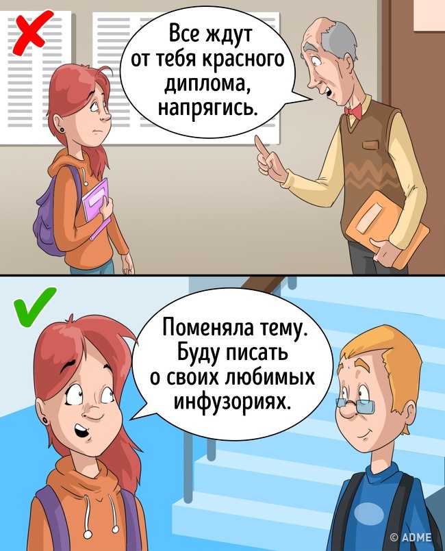 Надмірна зосередженість на собі, занепокоєння про те, як ми виглядаємо в очах оточуючих заважають нам жити і отримувати задоволення. Спробуйте ставитися до навчання і роботи як гри: повністю залучаючи в процес і намагайтеся не зациклюватися на результаті, радить відомий психолог майка чіксентміхайі.