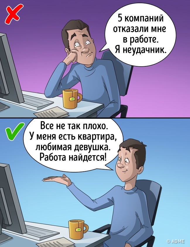 За порадою психолога Міхая Чиксентмихайи, варто навчитися тимчасово відключати негативні почуття, коли на нас звалюються проблеми. Це допоможе спокійно проаналізувати ситуацію і знайти нові способи вийти з скрутного становища.