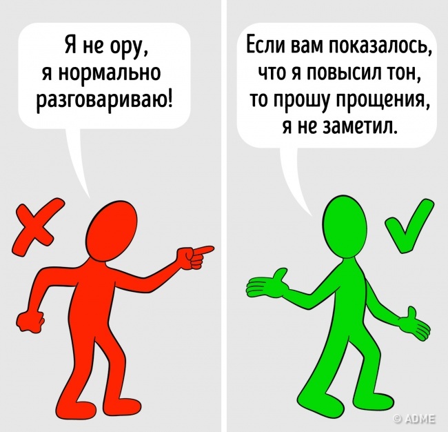 Для цього потрібно чітко розуміти тему і межі спору і відчувати ту межу, за якою закінчується бесіда і починаються закиди. У суперечці важливо не те, гаркавить людина, каже він голосно чи тихо, швидко чи повільно та інше, а тільки його думки і доводи. Також пам'ятайте, що думка людини про якомусь предметі не є характеристикою його як особистості.