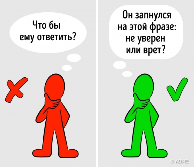 Слухаючи співрозмовника, стежте за його манерою говорити. Спробуйте вловити логіку його міркувань, щоб передбачити наступний хід. Намацайте слабкі сторони: порушення логіки, протиріччя, нечітка позиція та ін.