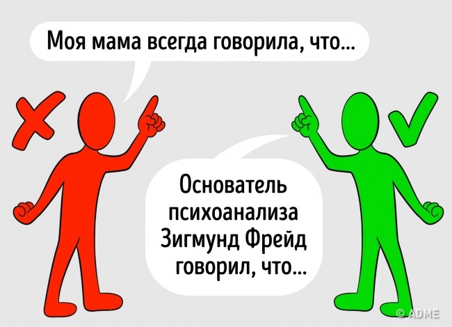 Яке б питання ви обговорювали, завжди знайдуться відомі публічні люди, які в ньому добре розбираються. Це можуть бути громадські діячі, політики, вчені, письменники та ін. Аргументуйте свою позицію, посилаючись на думку авторитетів, це посилить будь-яке ваше слово. Головне посилання має бути достовірною, інакше ви ризикуєте програти.