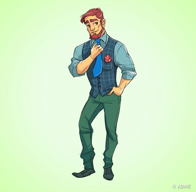 Валентину 35. Він регулярно відвідує барбер-шоп, в якому працює Марина, і бібліотеку, в якій працює Настя. Не одружений.