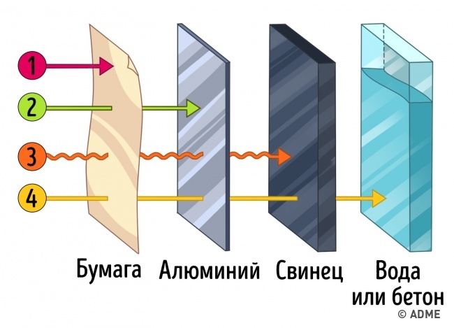 Не довіряйте радам з фільмів. Холодильник не врятує від ядерного вибуху, як це показано у фільмі «Індіана Джонс». Але в цьому є частка правди. Альфа-випромінювання не здатне подолати аркуш паперу, алюміній не пропустить бета-випромінювання, товстий свинець утримає фотонна випромінювання, а от від нейтронного випромінювання захистить товстий шар бетону або води.