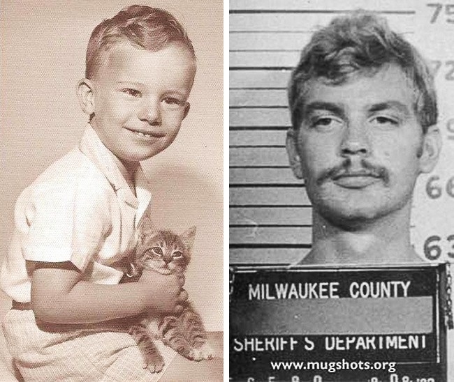 Погляньте на фото нижче, це Джеффрі Дамер — американський серійний вбивця, який був засуджений аж до 15 довічних термінів. Зверніть увагу, як він тримає кота.