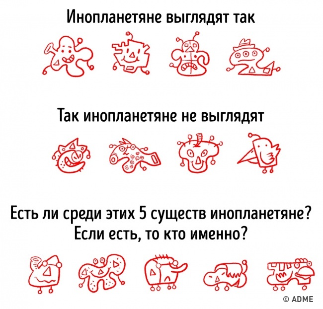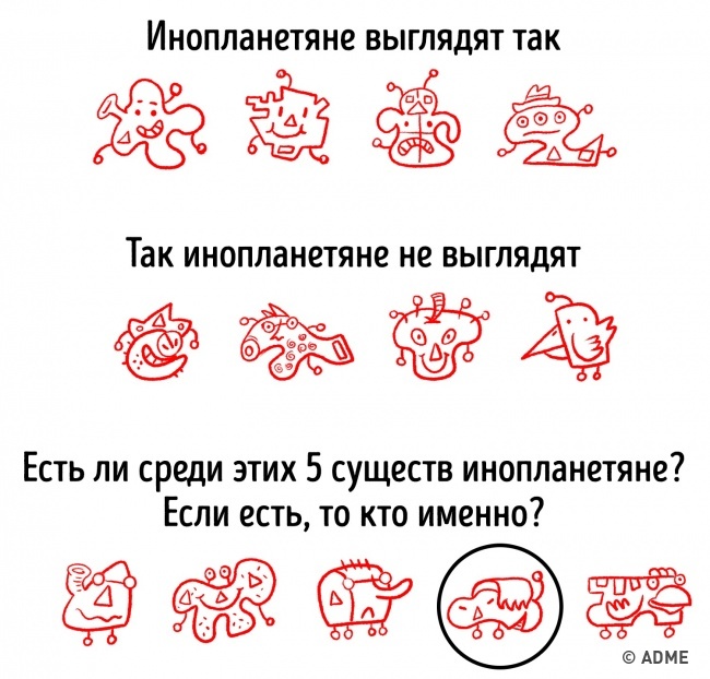 У третьому ж ряду така істота всього одне. Воно і є інопланетянин.