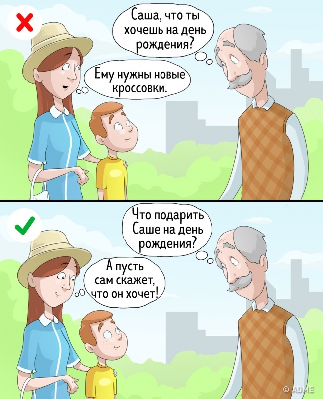 Ми добре знаємо, що брокколі корисніше цукерок, а нові кросівки потрібніше ляльки. Ось і диктуємо дітям, явно чи приховано, що і як вони повинні хотіти. А там, як в анекдоті: «Мама, я хочу їсти?» «Ні, синку, ти замерз і хочеш погрітися».