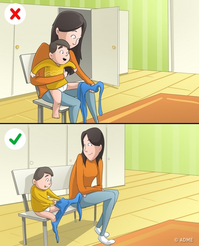 І що ж робимо ми? Одягаємо мало не до весілля, аргументуючи поспіхом і тим, що «сам він не вміє». Годуємо з ложечки, забороняючи є самому і пізнавати різні смаки. Забороняємо самодіяльність. А потім дивуємося, що підліток не хоче допомагати мамі і поводиться необережно.