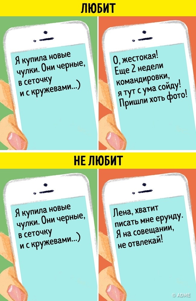 «Любов чоловіка виражається у трьох формах: він прилюдно заявляє свої права на вас, захищає і забезпечує» — так вважає Стів Харві, автор нашумілої книги «Роби як жінка, думай як чоловік». Частково з цим можна посперечатися — в наш час далеко не всі жінки потребують забезпечення або захист з боку чоловіка. Але точно потребують любові, якщо вже завели роман. Правда, іноді жінки схильні бачити любов там, де її зовсім немає.