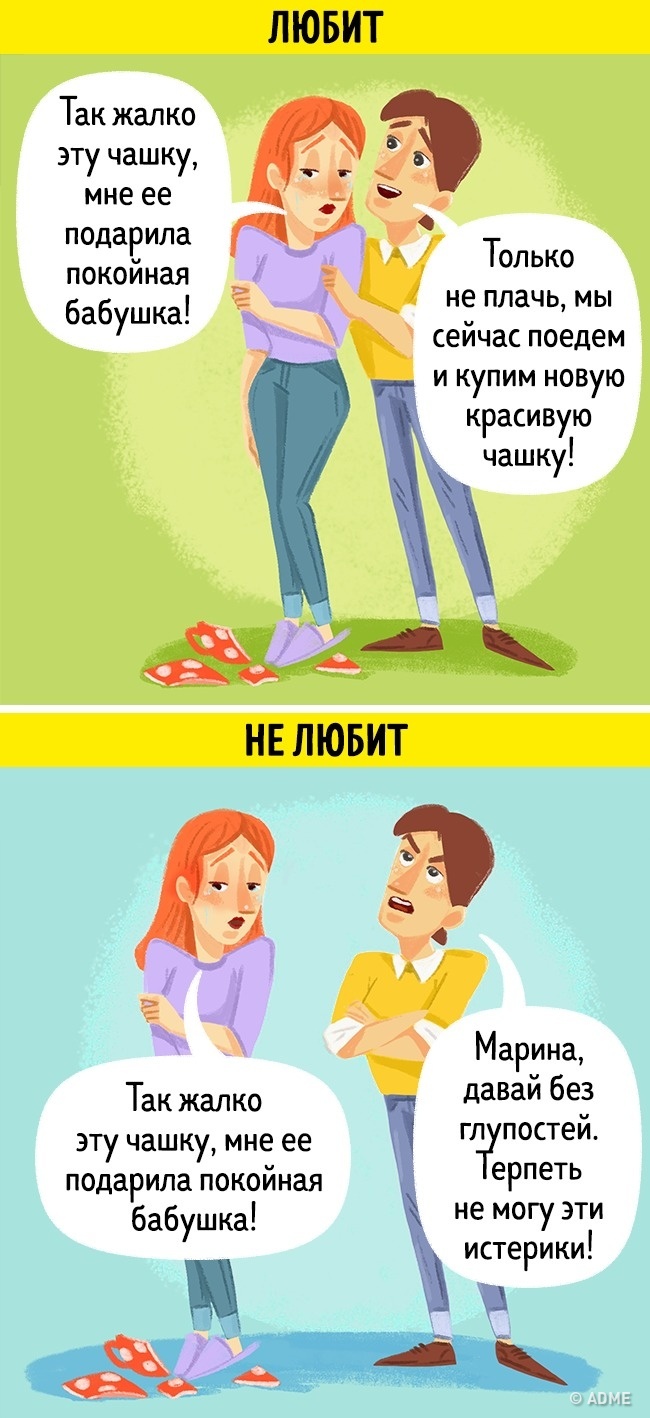 Жінки люблять скаржитися на розкидані по будинку чоловічі шкарпетки, але самі вони теж деколи мають нервують або дивні звички. Ми любимо по 2 години займати ванну і стільки ж базікати з мамою по скайпу; забивати весь шафа своїми речами, залазити до хлопця в тарілку в ресторані, щоб спробувати його страву; весь день співати одну і ту ж безглузду пісню. При цьому люблячі чоловіки, як правило, все це мужньо терплять і мовчать або реагують з гумором. Якщо ж чоловік став постійно робити вам зауваження з будь-яких дрібниць, то єдине почуття, яке у нього залишилося до вас, — роздратування.