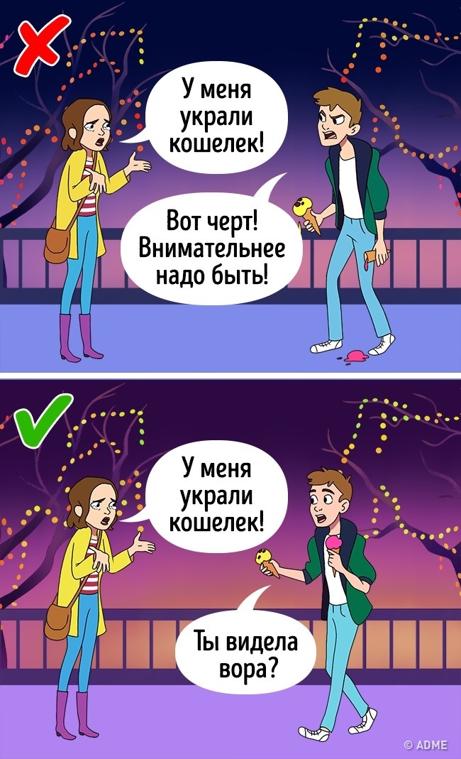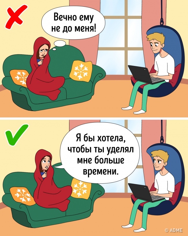 Цей пункт випливає з попереднього. Не чекайте, що ваш партнер навчиться читати ваші думки. Будьте відкриті і чесні з близькими людьми, діліться з ними своїми почуттями і переживаннями.