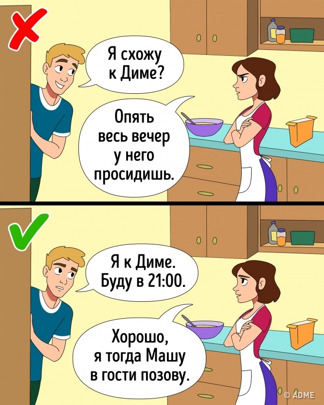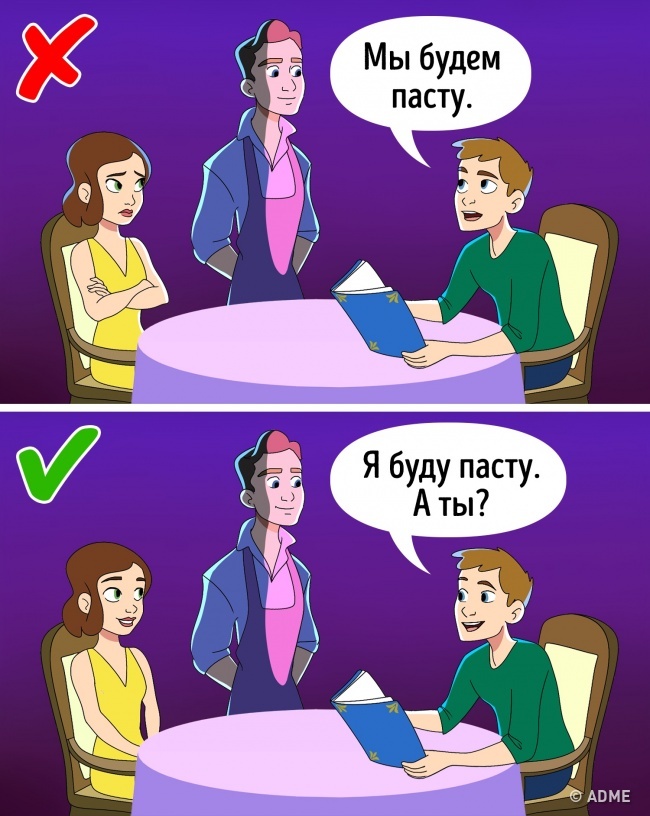 Ніколи не приймайте рішення за двох, не робіть вигляд, ніби з легкістю читаєте думки партнера. Це не так! Запитуйте і отримуйте відповіді — ось ключ до здоровим і гармонійним відносинам.
