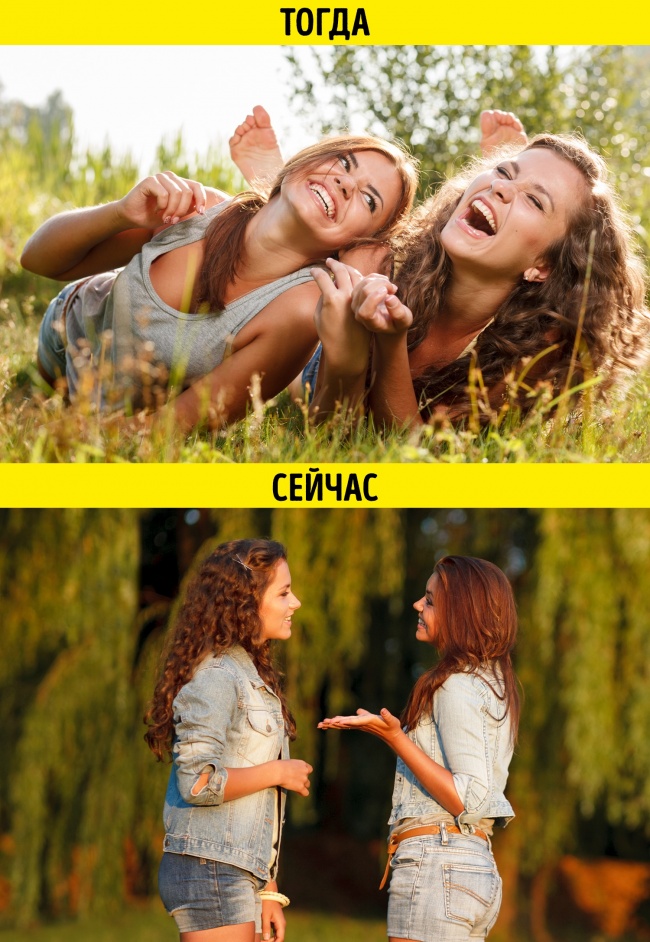 Як це відбувається: В юні роки зберігати дружбу легше хоча б тому, що територіально вас багато що пов'язує: ви ходите в одну школу, живете поряд, вам важко не перетнутися в спортивних або творчих секціях. Але дорослішання — неминучий етап життя, і часто доводиться переїжджати з місця на місце. Перший час здається, що нічого не змінилося і є можливість спілкуватися на відстані, але зв'язок безперервно слабшає — хочемо ми цього чи ні.