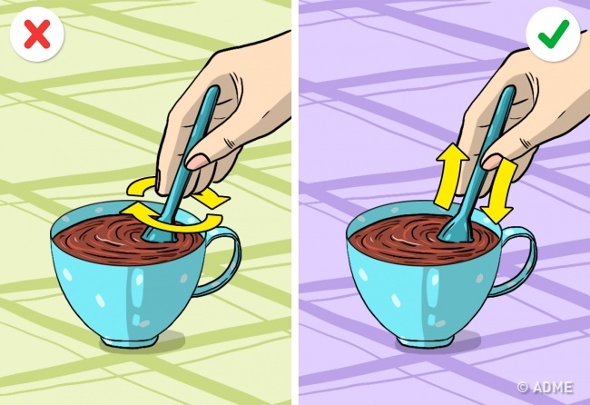 Ви настільки сконцентровані на тому, щоб не зачепити стінки чашки, що навіть не підозрюєте про свою помилку. Руху ложки повинні бути круговими, а взад-вперед, як маятник. Так і цукор розчиниться швидше, і не стукати ложкою буде набагато простіше.