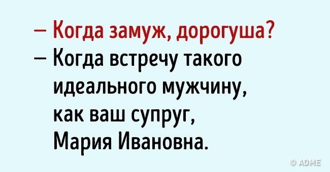 Простіше і природніше будуть виглядати компліменти, пов'язані з питанням, що вам поставили. Наприклад, якщо вас запитали про дітей, похваліть дитину чи онука співрозмовника. І додайте який-небудь загальний відповідь — «всьому свій час», «як тільки, так відразу», «не від мене залежить» і так далі. Компліменти подобаються людям і разом з тим трохи бентежать їх. Тому співрозмовник навряд чи буде далі розвивати тему. Головне, щоб похвала відповідала дійсному положенню речей, інакше ваш комплімент буде сприйнятий як сарказм.