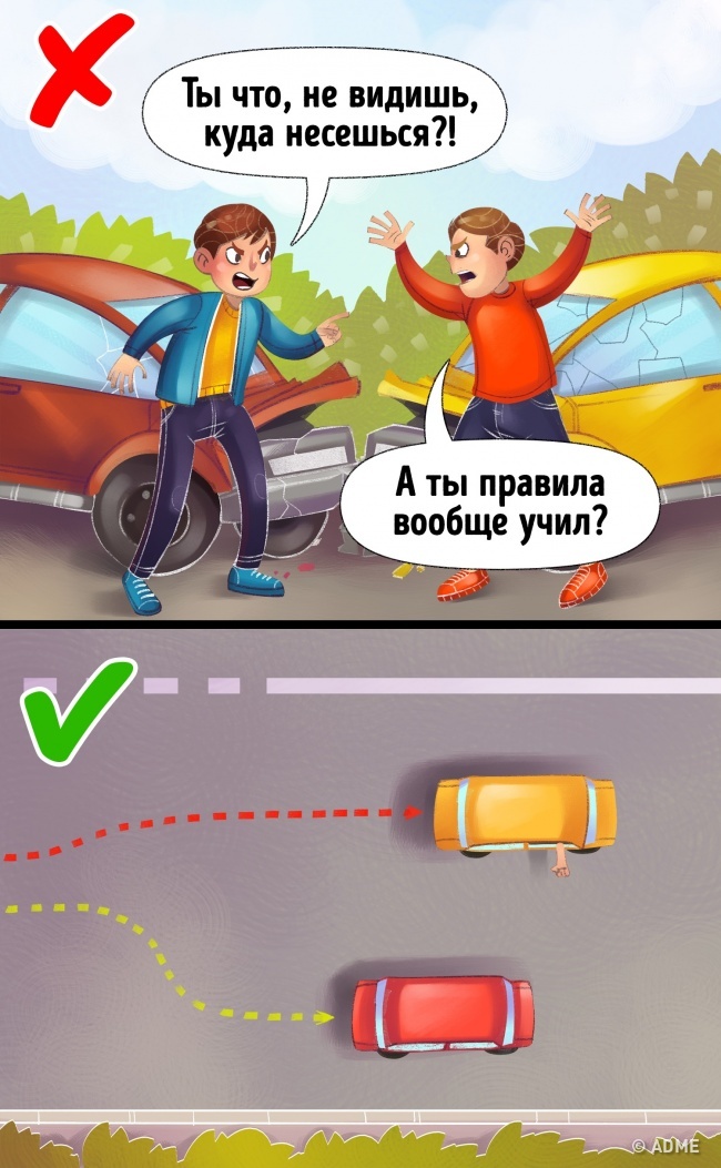 Не забувайте про золоте правило «трьох д» — «дай дорогу дурневі». Нехай звучить грубо, але в деяких ситуаціях це може врятувати не одне життя.