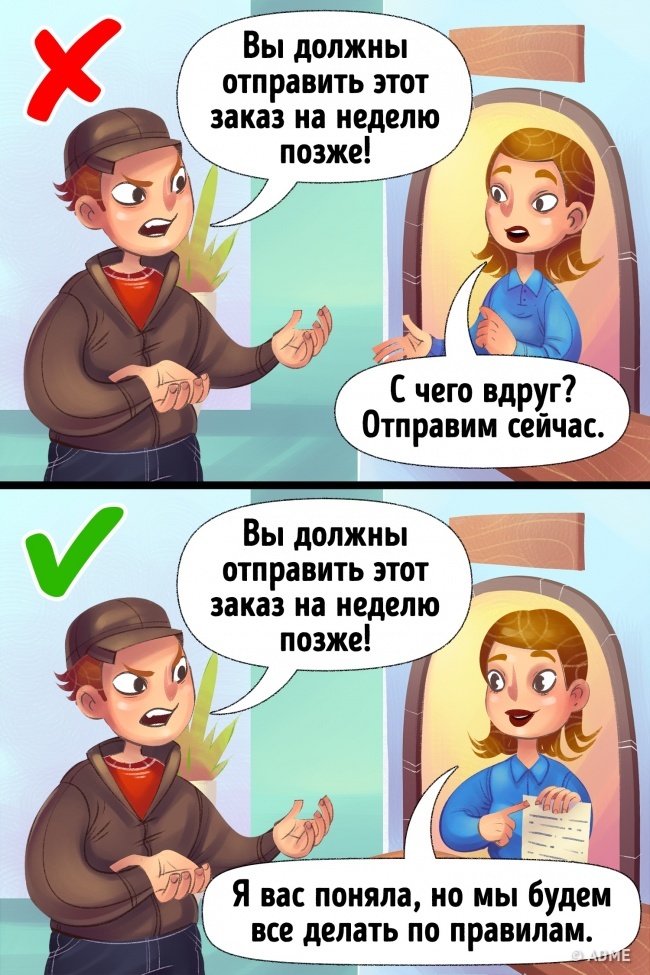 - Погоджуйтеся з правотою: «Так, ви праві, я не повинен порушувати регламент і зобов'язаний бути більш продуктивним».