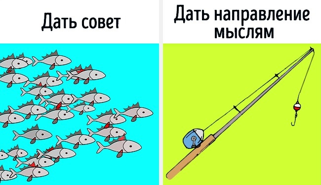 Робота психолога полягає не в тому, щоб радити, а в тому, щоб допомогти людині самостійно дійти до справжніх причин і правильних рішень. Радити неможливо навіть в схожих ситуаціях. Всі люди різні, не може існувати універсального способу вирішення проблеми, який підійде для всіх.