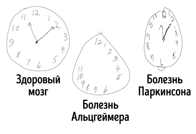 Завдання просте: намалювати годинник. Як показала практика, малюнки людей з певними діагнозами схожі між собою.