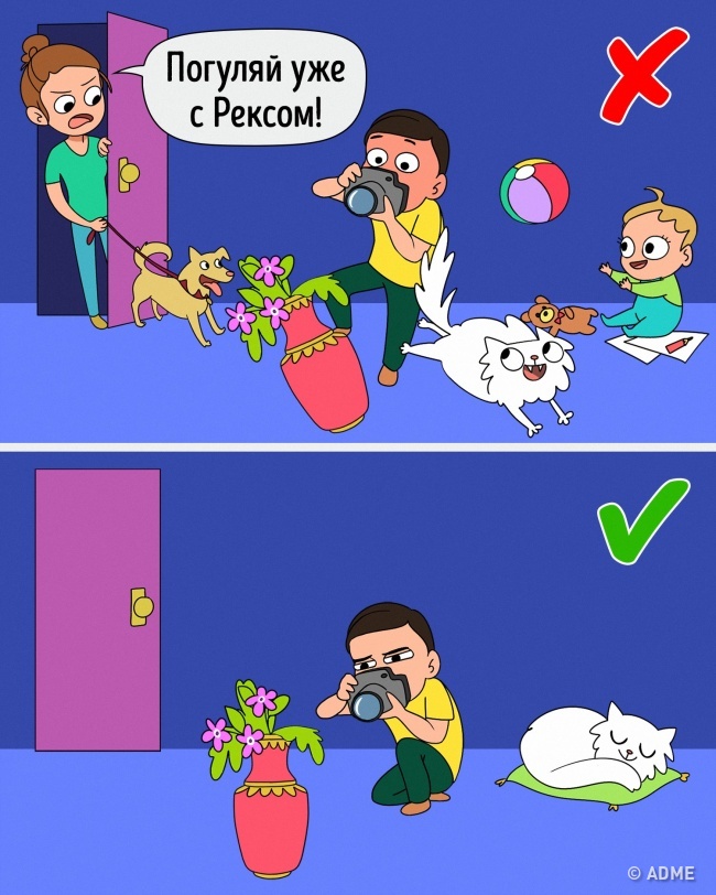 - Вимкніть телевізор і комп'ютер, поставте телефон на беззвучний режим, попросіть маму посидіти з дитиною і відправте коханої людини зустрітися з друзями. Загалом, створити таку обстановку, в якій вам ніщо не завадить зайнятися малюванням.