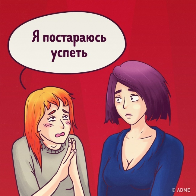 Часто ми не можемо відмовити близьким і знайомим, так як боїмося їх образити або поранити. Замість цього придумуємо відмовки типу: «Я постараюся», «Не буду обіцяти, якщо вийде». У підсумку за нами залишаються незавершені справи, про які ми постійно переживаємо.