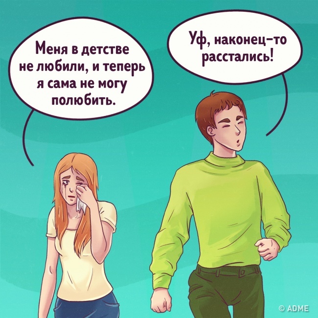 «Всі проблеми дитинства» — знайома фраза, чи не так? Мати була авторитарною і гнобила, батько був м'яким і не захищав, або навпаки. Не показали батьки правильну модель життя. Тому відносини (якщо вони взагалі є) кульгають, кар'єра не будується.