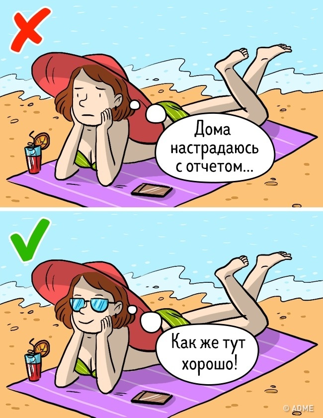 Спогади, як вир, затягують у свої глибини, але не стають рішенням проблеми. Переживання про майбутні негаразди — марна трата часу. Живіть тут і зараз. Тоді в минулому вас будуть чекати радісні спогади, а в майбутньому — захоплюючі і приємні моменти.