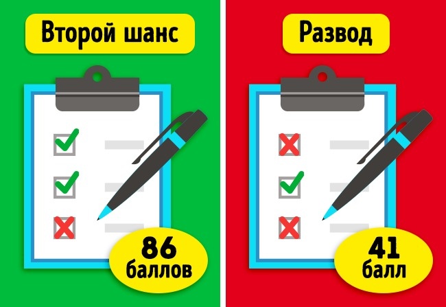 Кожен з них може отримати за тест максимум 100 балів. Але такий результат не допоможе домогтися бажаного. Щоб розлучитися, чоловікові і жінці потрібно набрати менше 60 балів. Тільки тоді суддя схвалить їх рішення.