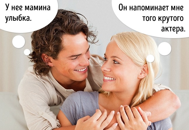 Більш привабливими нам здаються люди, схожі на батьків. Психологи вбачають в цьому певний ефект імпринтингу, коли дитина з дитинства вчиться сприймати красу тих, кого бачить поруч. Також люди відчувають симпатію до об'єкту тільки тому, що знайомі з ним. І якщо риси обличчя здаються нам знайомими, вони сприймаються нами як більш красиві.