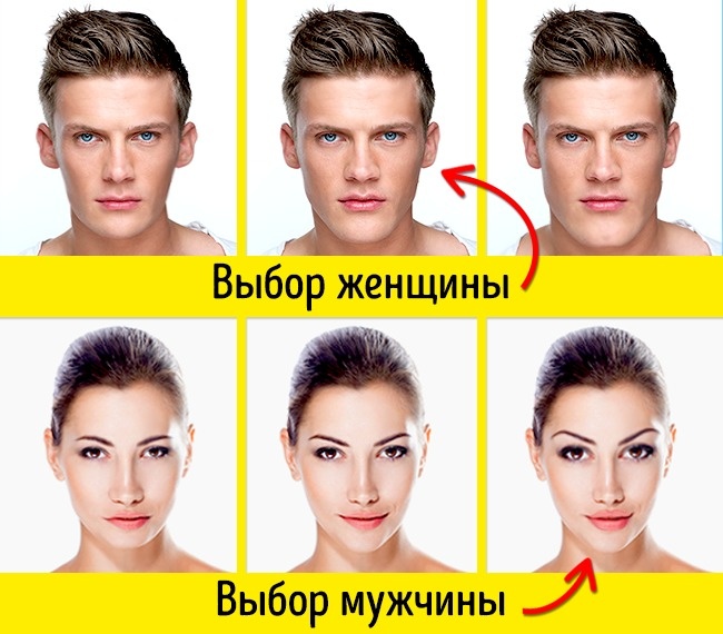 Професором Девідом Перреттом був проведений експеримент. Фотографії чоловіків і жінок змінили — перебільшували і послабили статеві характеристики. І попросили випробуваних вибрати найбільш привабливих. Чоловіки в переважній більшості вибирали фото сексуально утрированных жінок. А жінки вибирали чоловіків з середніми рисами, такі здавалися їм більш щирими та добрими. Ті риси, які потрібні людині, здаються особливо гарними у потенційного партнера.