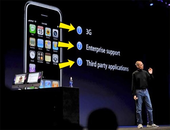 У 2007 році Стів Джобс розповів публіці, що представить 3 нових продукту: новий iPod, телефон і пристрій для виходу в інтернет. Після цього він показав публіці одне-єдине пристрій — iPhone, де в одному гаджеті були об'єднані можливості трьох різних пристроїв.