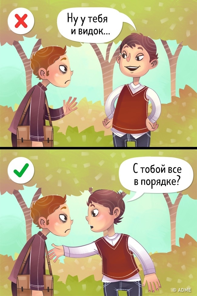 Як правильно: Покажіть людині, що ви хвилюєтеся за нього. У цьому випадку підійде фраза: «З тобою все в порядку?».