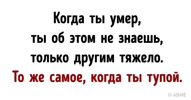 Читайте і пам'ятайте, що бути дурним і здаватися таким з боку — абсолютно різні речі, тому що до всяких там сторін розумним людям немає ніякого діла. А в кінці на вас чекає бонус: рада, як себе вести, коли все-таки зглупив.
