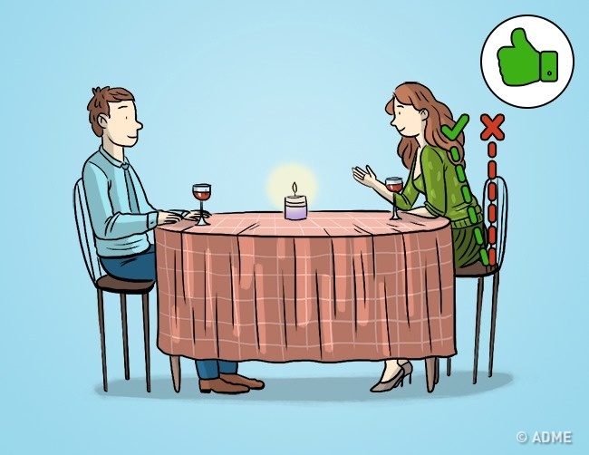 Якщо жінка відчуває почуття симпатії, то вона, навіть несвідомо, подається ближче і вирівнюється, таким чином виставляючи свою фігуру в найкращому світлі.