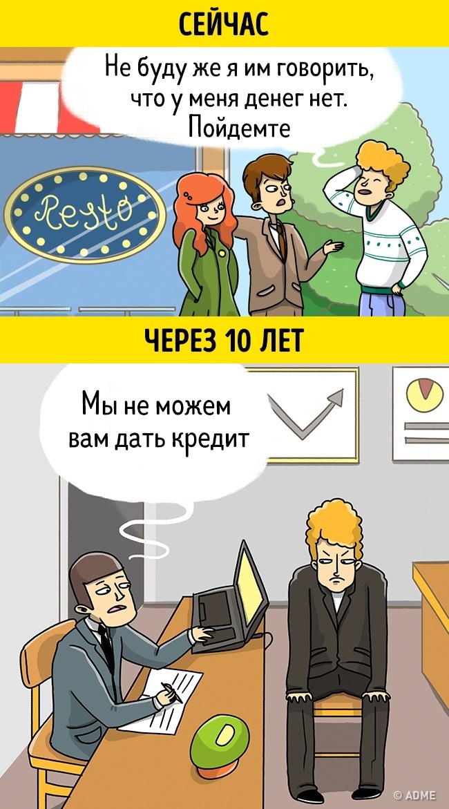 Якщо ми витрачаємо грошей більше, ніж можемо собі дозволити, то цим заганяємо себе в замкнене коло. Краще проаналізуйте свої доходи і не робіть необдуманих покупок. Шукайте варіанти поліпшення свого фінансового стану, якщо воно вас не влаштовує, а не варіанти де позичити грошей.