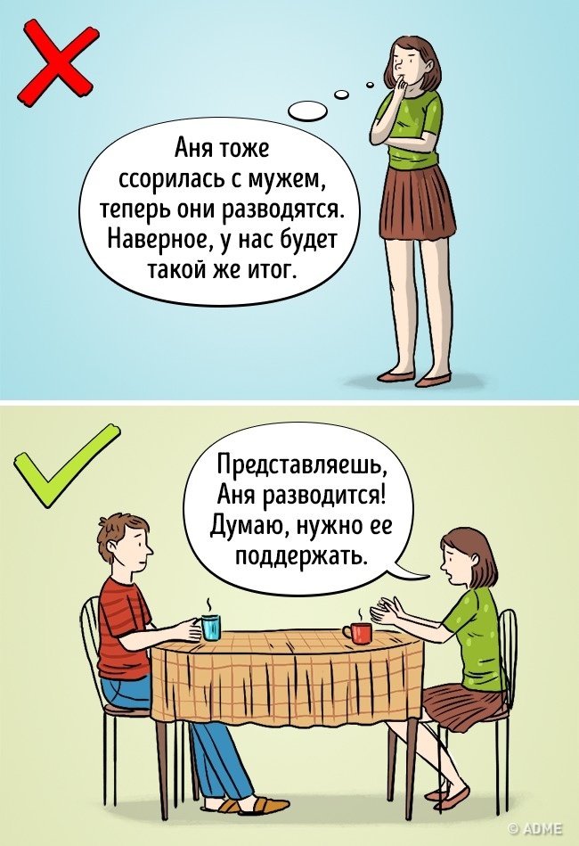 Що робити? Рецепт від такої проблеми лежить глибше, ніж розрив зв'язків з «небезпечної» парою. Головне тут — мати по-справжньому близькі стосунки з чоловіком, причому не тільки в момент розлучення Ані абстрактної, але і до, і після нього. Щиро розмовляйте один з одним. Коли у відносинах панує правильний мікроклімат, зовнішні фактори не зможуть їх зруйнувати.
