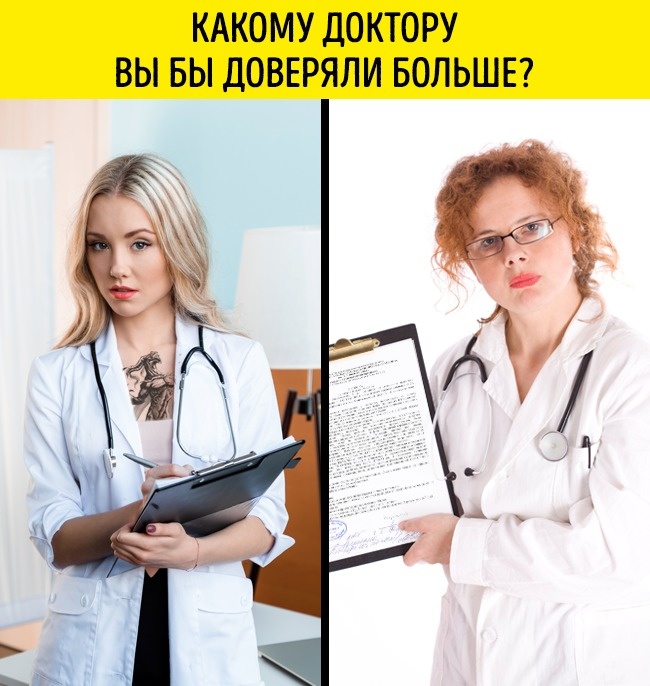 В цьому колажі ми вирішили зібрати кілька кліше разом, щоб кожен з нас міг ще раз усвідомити, як сильно вони в'їлися в нашу свідомість. Цілком очікувано, що один з цих докторів зовсім не здається нам серйозним.