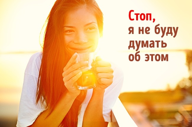 Наш мозок влаштований таким чином, щоб більше концентруватися на труднощах і проблемах, ніж на радісних подіях. Колись це потрібно було для виживання, але зараз це тільки забирає енергію. Є спосіб позбутися від небажаних думок. Скажіть «стоп» негативної думки. Не занурюйтеся в її обдумування, просто відзначайте, що вона є, і більше до неї не вникайте.