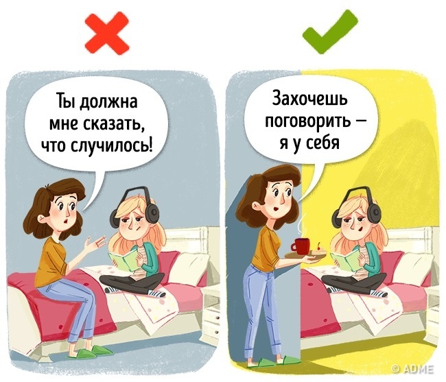 Часом з самих благих спонукань батьки починають перевіряти кишені, сумку, листування підлітка. Роблячи так, ми не лише виявляємо неповага до дитини, але і знецінюємо його особистий простір, а адже він ще тільки починає пробувати поводитися з ним.